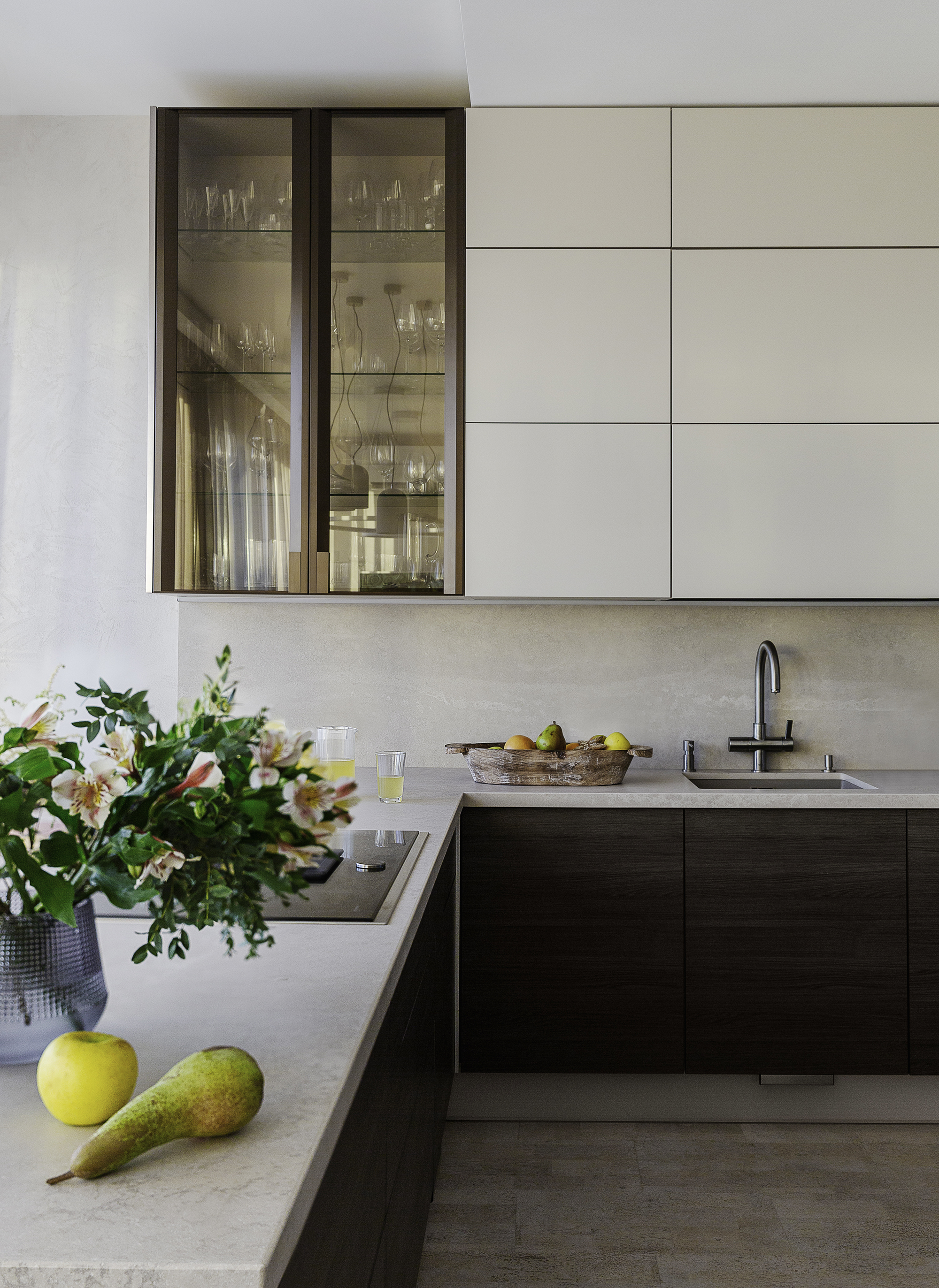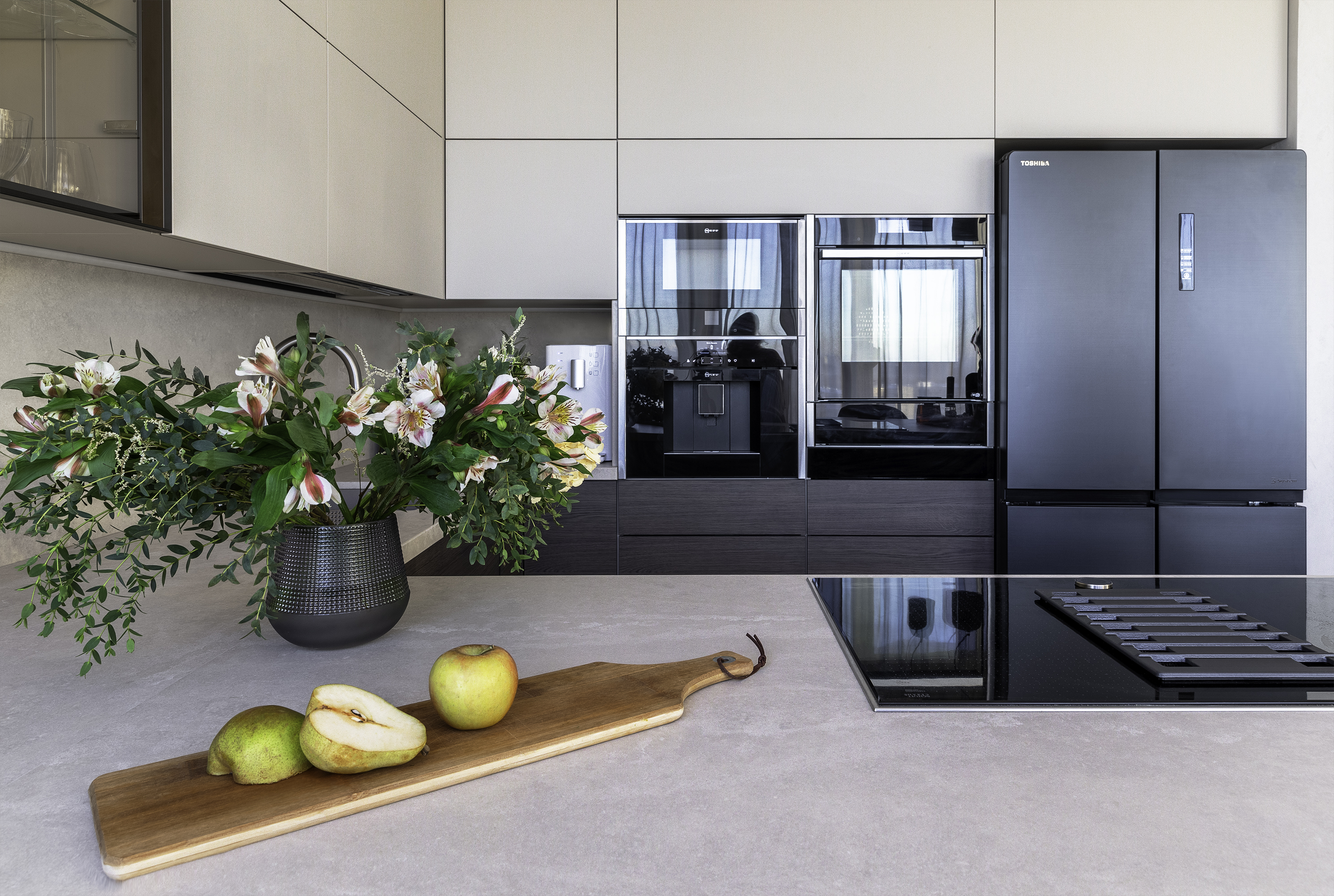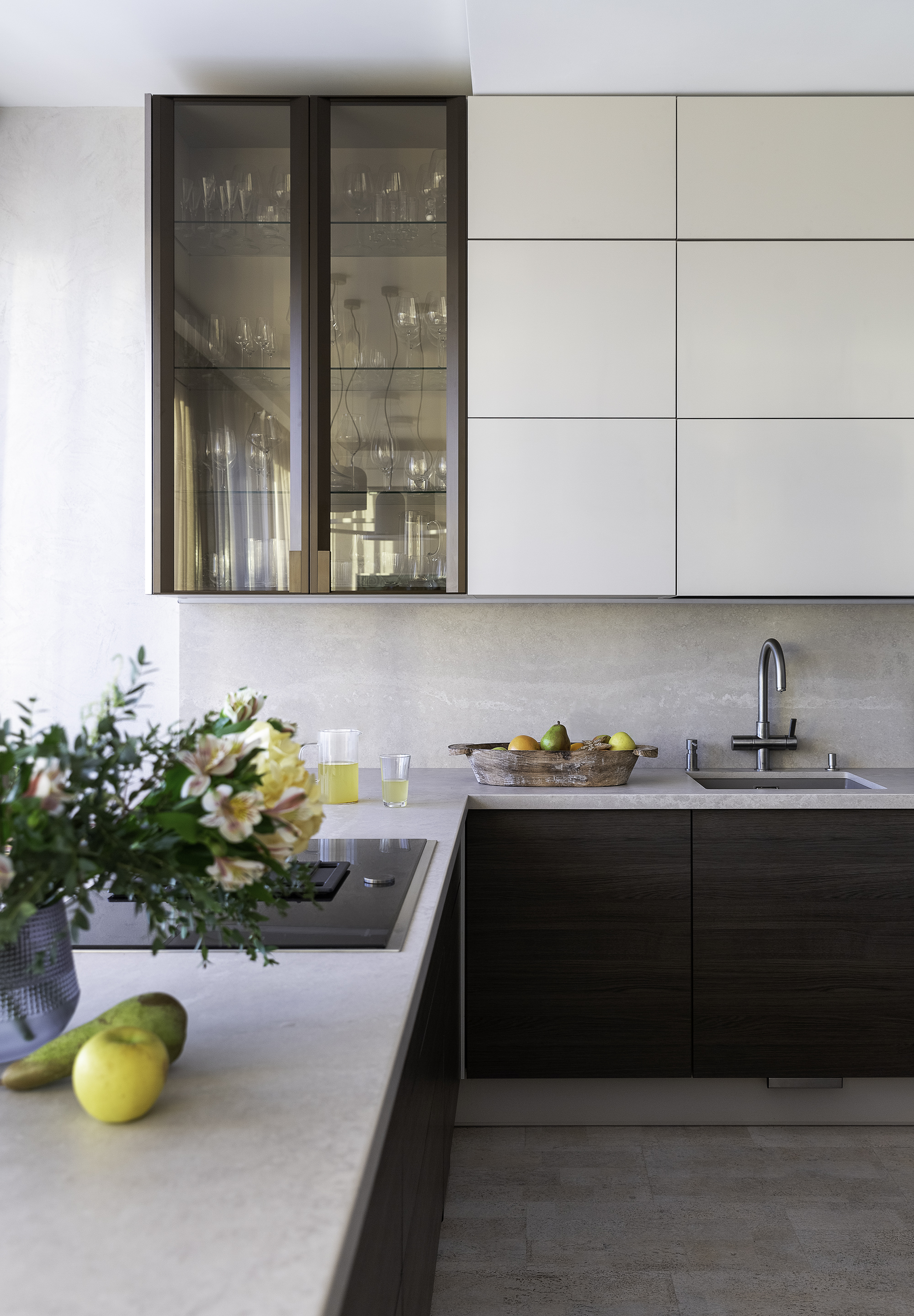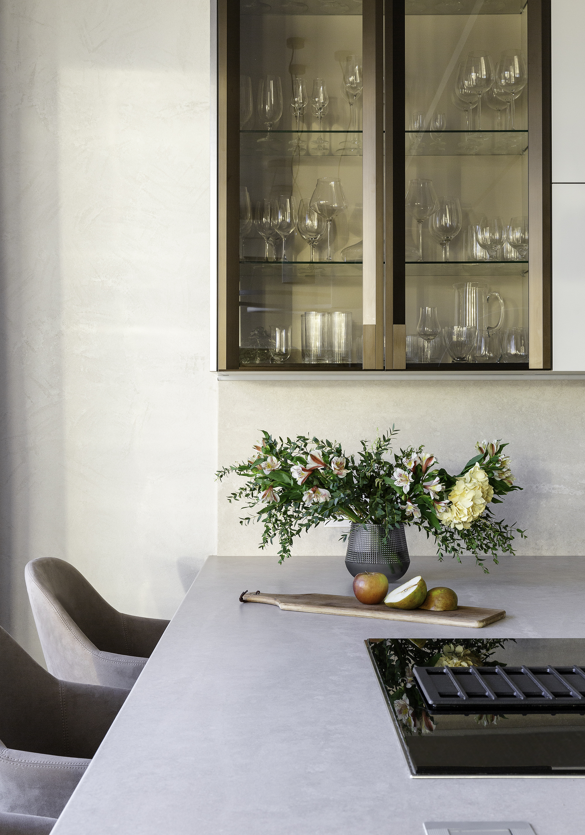 Также на кухне вы не найдете вытяжку, потому что она встроена в варочную поверхность и не нагромождает визуал кухни.