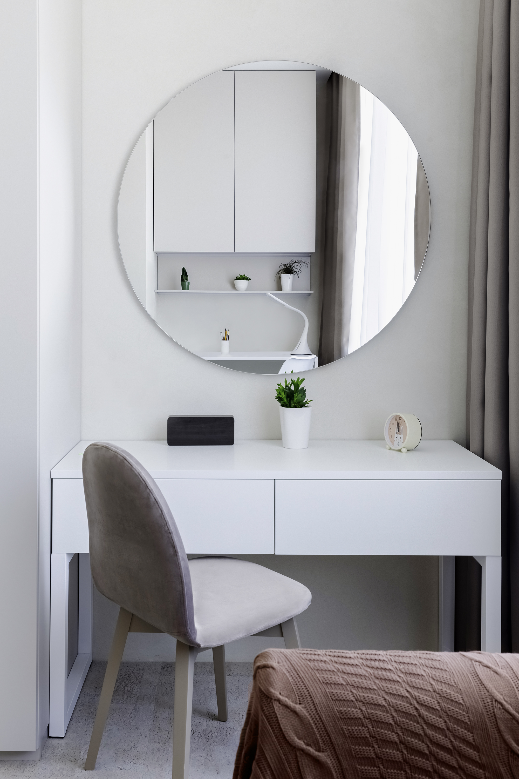 Помещения получились небольшие по площади, но очень функциональные, в каждой из зон много хранения, а в кабинете удалось организовать сидячее место под окном.