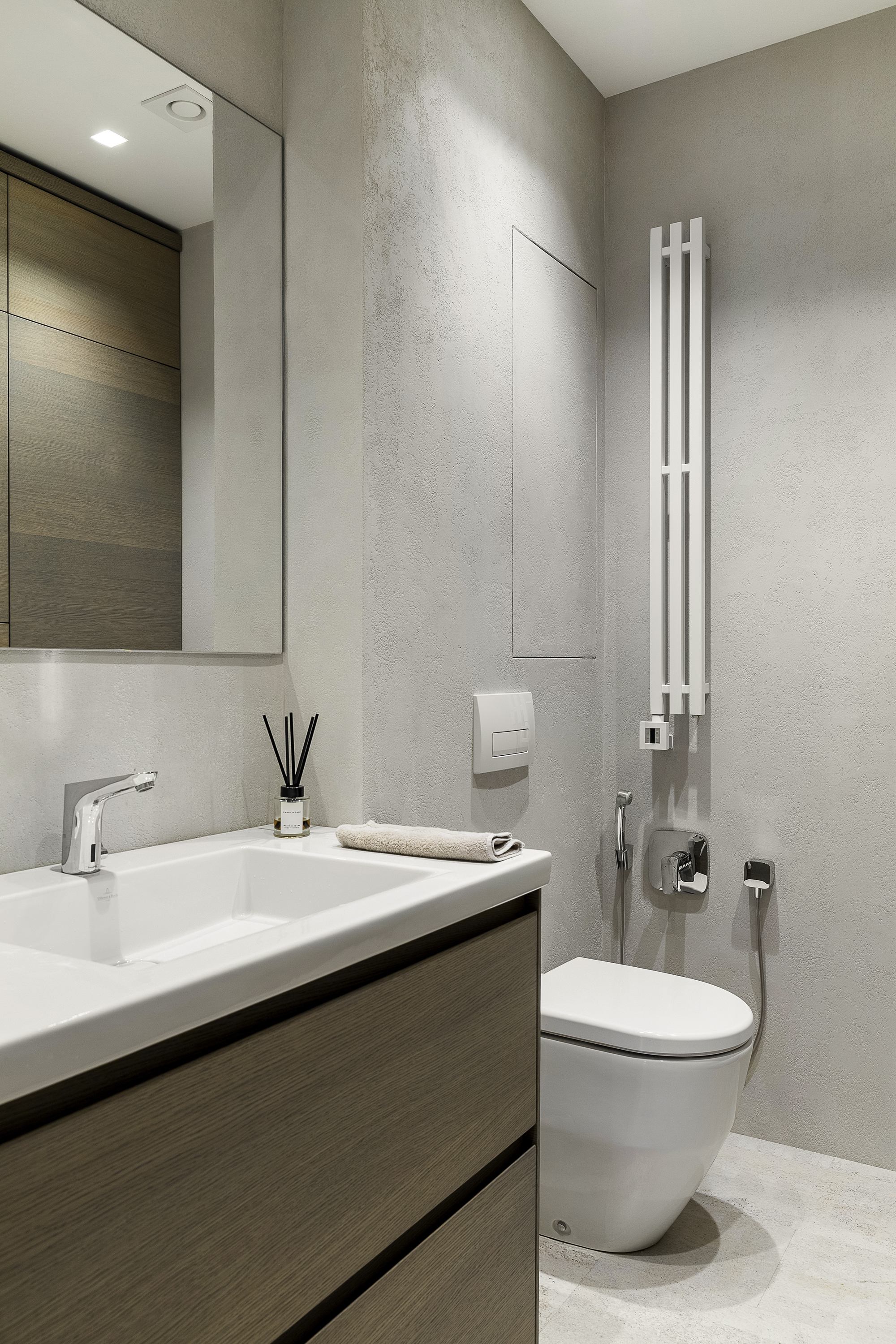 Реализованный проект в ЖК 1147. Дизайн интерьера квартиры в стиле минимализма с природными элементами. Фото реализованного проекта.