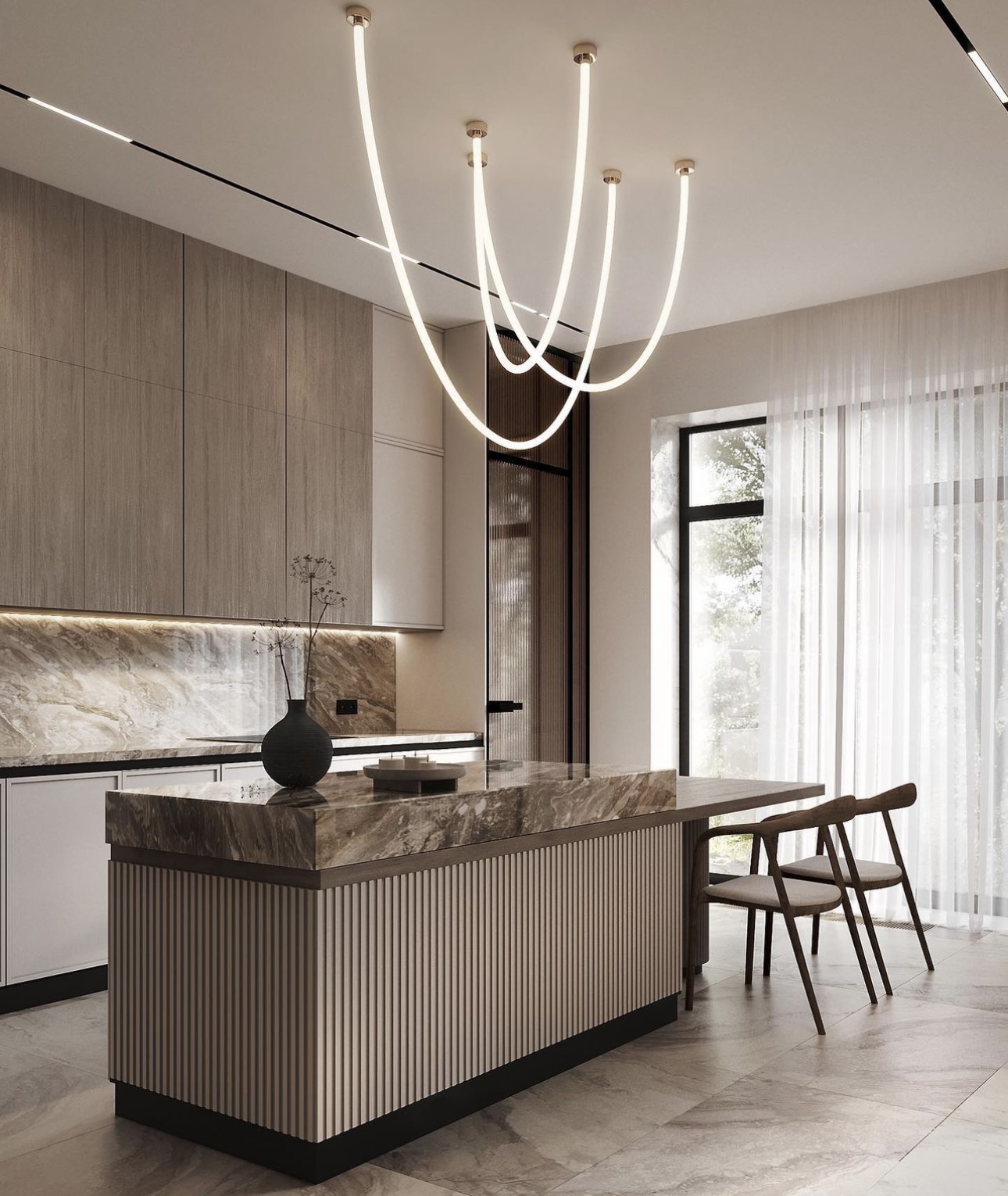 - Гармония с архитектурой. Мы учитываем специфику вашего дома: от планировки до ландшафта. Особое внимание уделяется высокому потолку, панорамным окнам, просторным холлам и террасам, чтобы подчеркнуть масштаб и выразительность пространства.