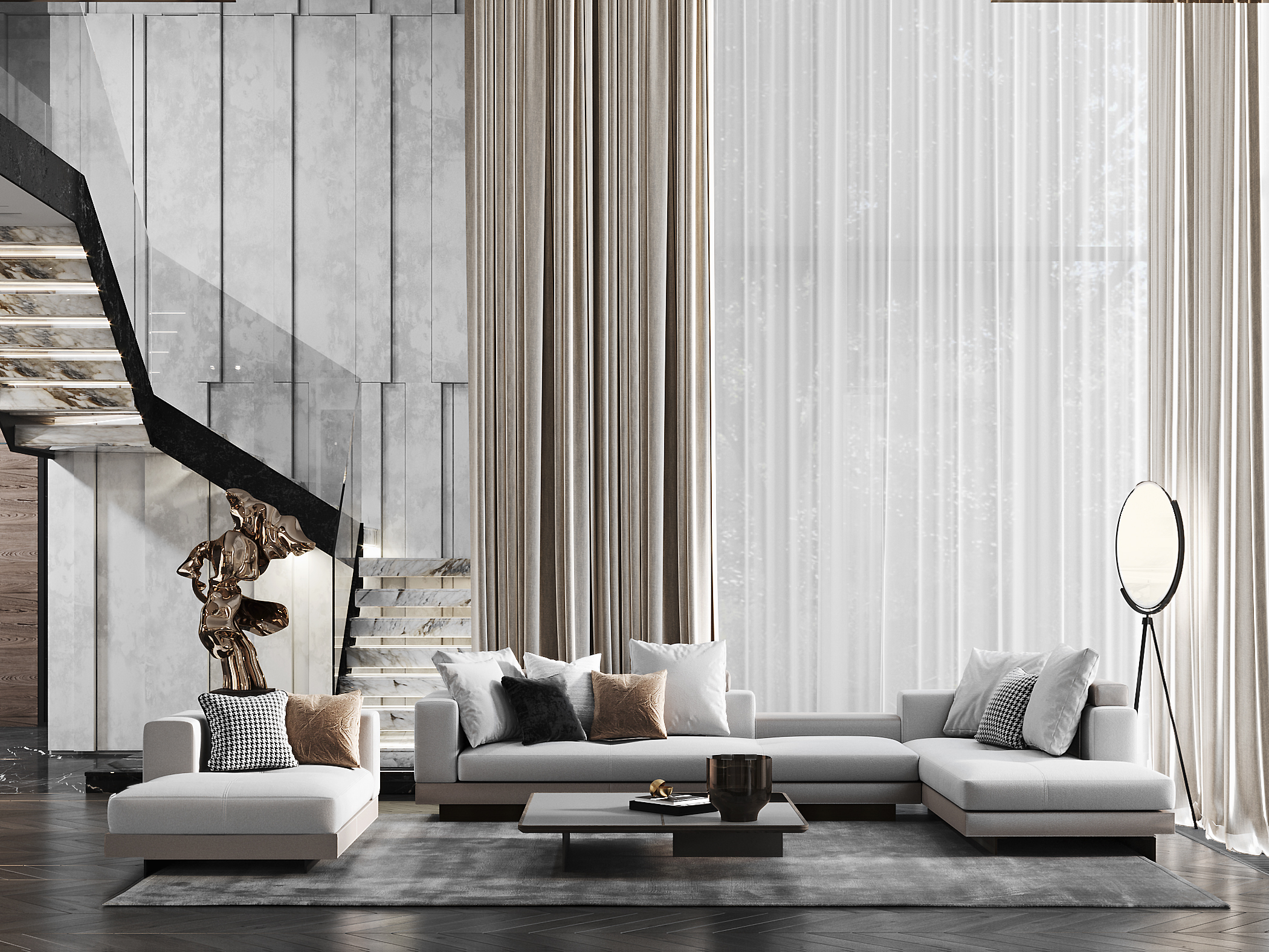 Диван имеет огромный визуальный вес всей гостиной, поэтому может очень сильно влиять на общий вид как в лучшую, так и в худшую сторону. Если у вас неудачный вариант дивана первое, что приходит в голову – закрыть его пледом, но нет, так делать не стоит, это будет очень дешевить интерьер. Лучше обильно осыпать диван красивыми объёмными интерьерными подушками, которые выглядят лучше дивана. Удачный вариант современного дивана не хочется прятать за пледами или подушками, он будет доминантой всего интерьера, поэтому экономить на данной позиции крайне нежелательно.