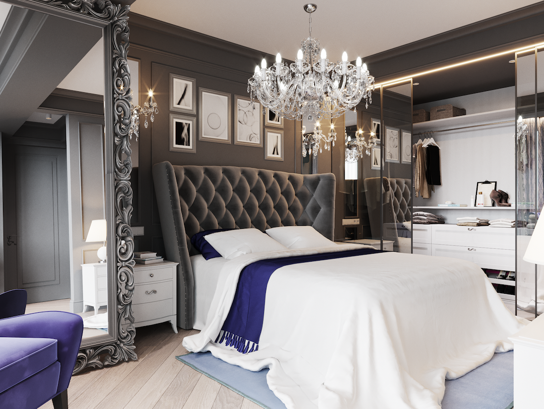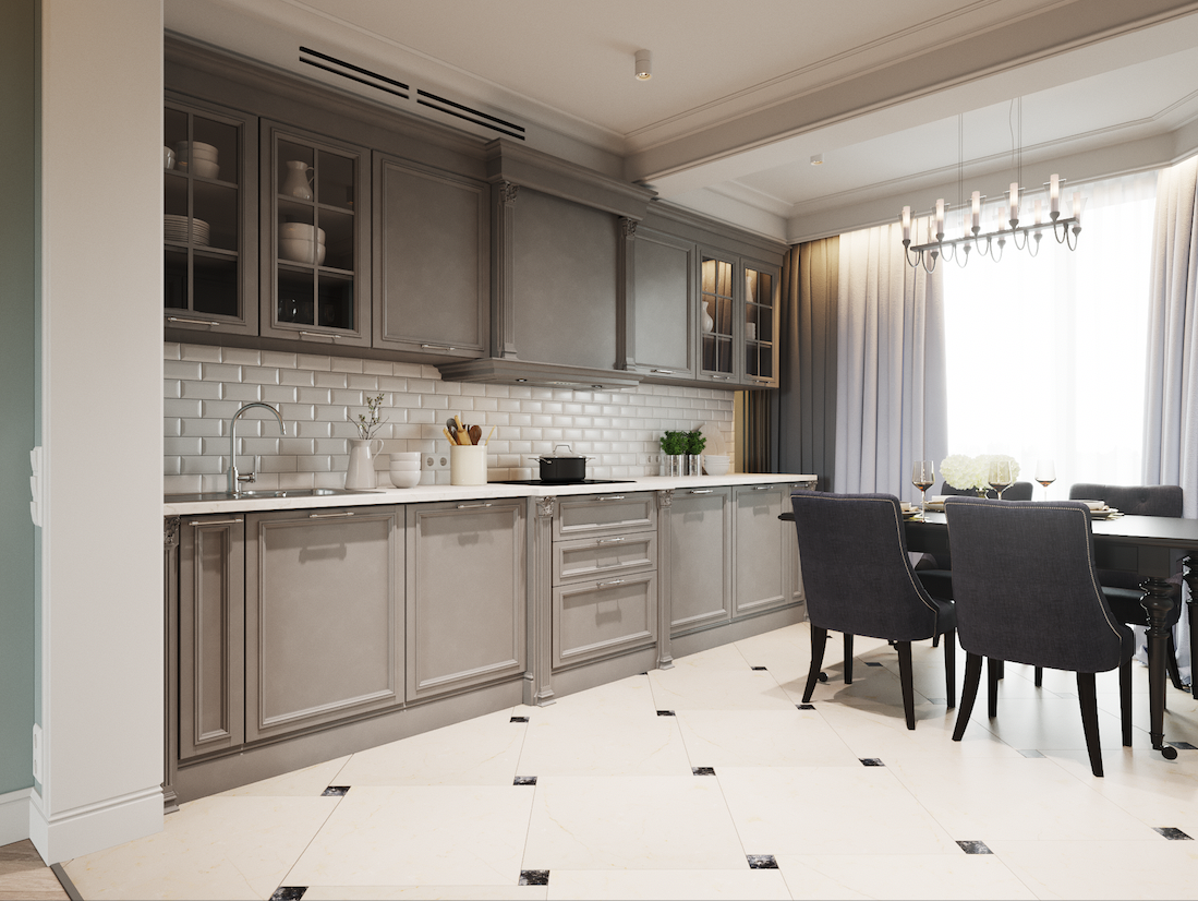 Проект квартиры в стиле современная классика. Много ярких элементов, пространства и шикарные виды.
