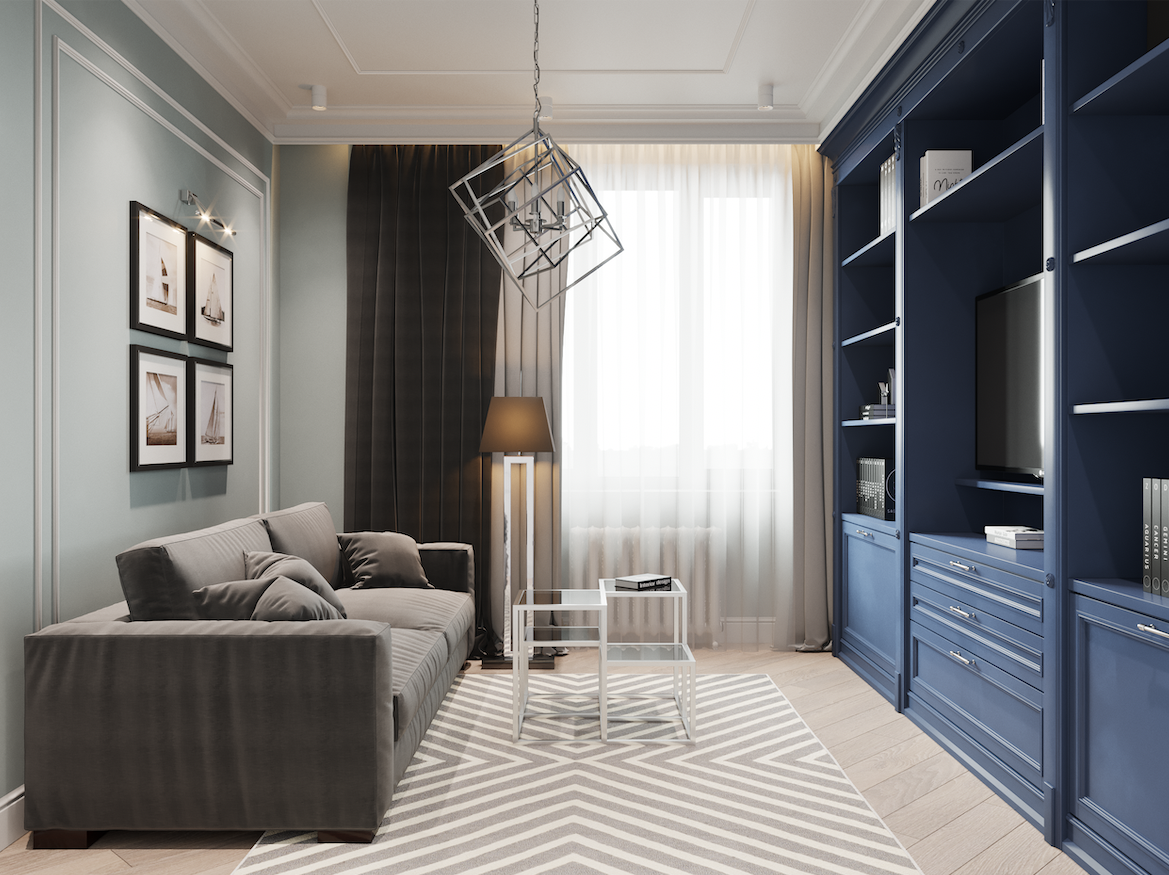 - второй гостиной, мы предусмотрели удобный диван с зоной ТВ напротив, так же в шкафу спряталась игровая консоль;