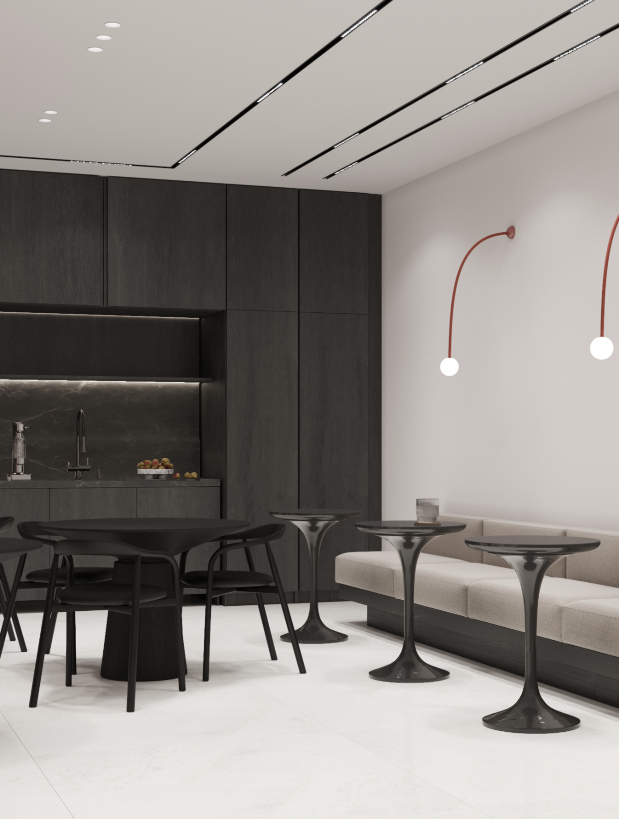 • Гостевая зона — презентабельный ресепшн, дизайнерская мебель, элементы декора.